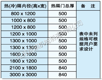 隔绝门系列产品主要尺寸