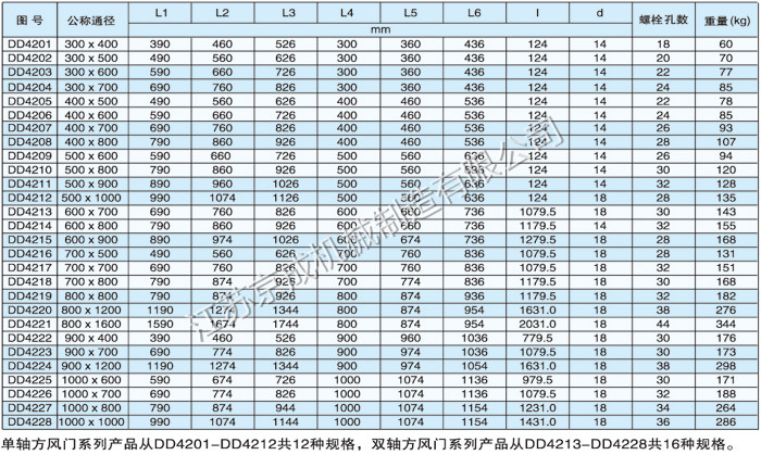 单轴、双轴方风门系列产品尺寸及理论重量
